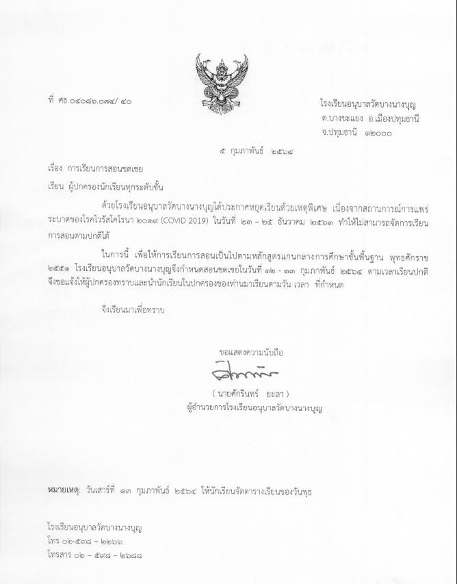 เปิดภาคเรียนที่ 1 ปีการศึกษา 2564