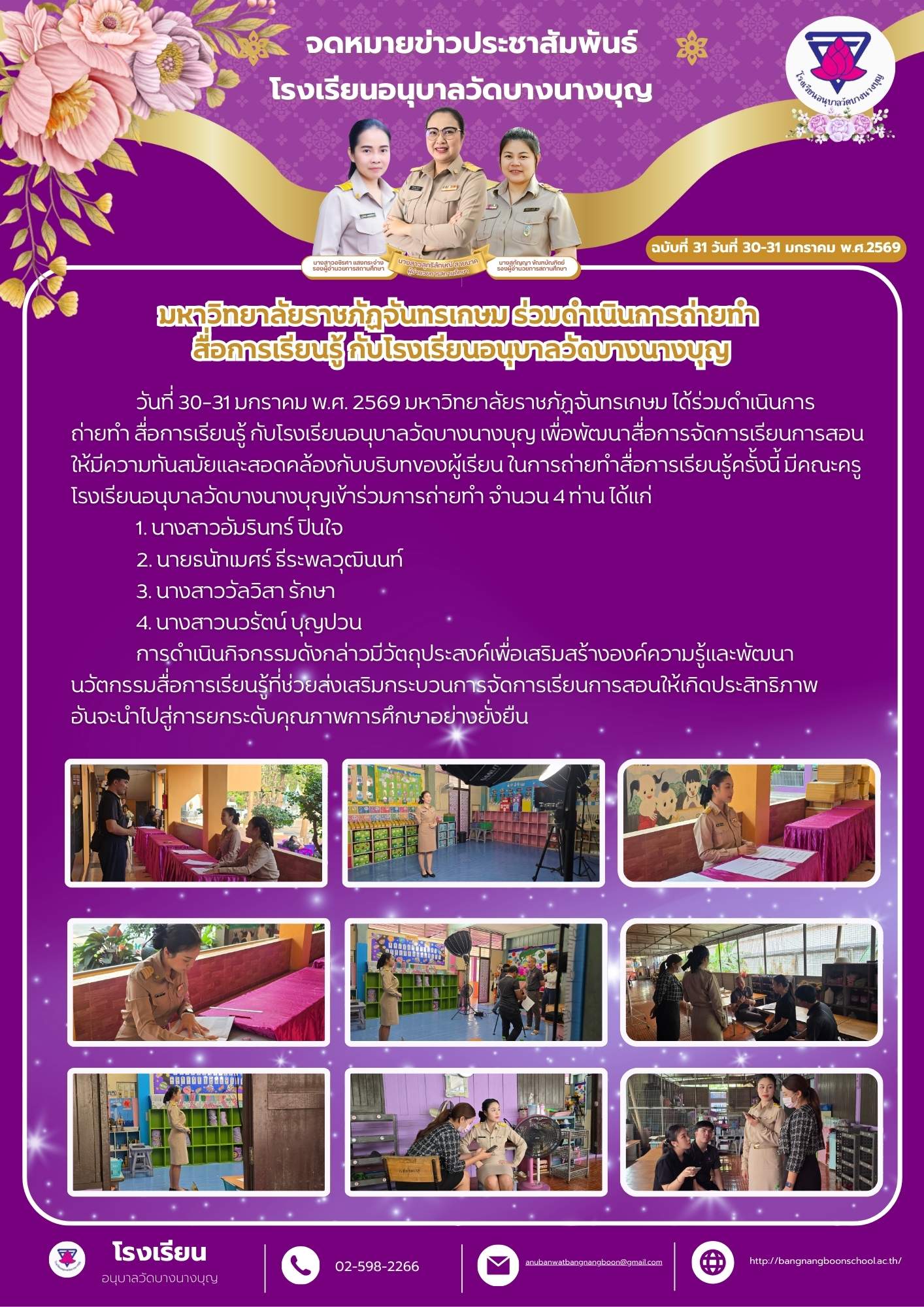 มหาวิทยาลัยราชภัฏจันทรเกษม ร่วมดำเนินการถ่ายทำ สื่อการเรียนรู้ กับโรงเรียนอนุบาลวัดบางนางบุญ