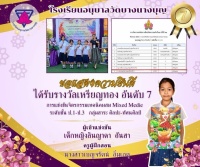 ขอแสดงความยินดีกับนักเรียนและครู ที่ได้รับรางวัลเหรียญทอง อันดับ 7 การแข่งขันจิตรกรรมเทคนิคผสม Mixed Media ระดับชั้น ป.1-ป.3